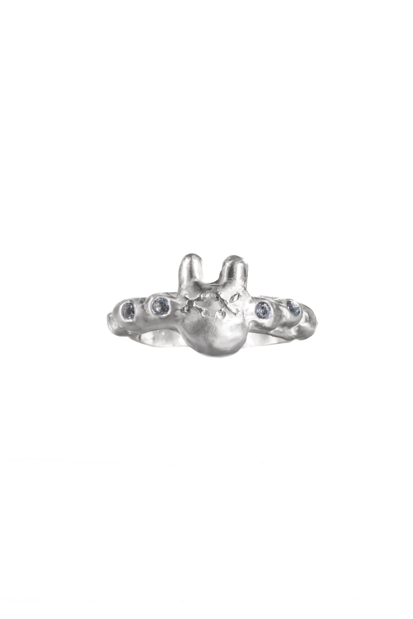 Preorder. Sterling silver Dead Bunny Ring with faceted CZ stones
